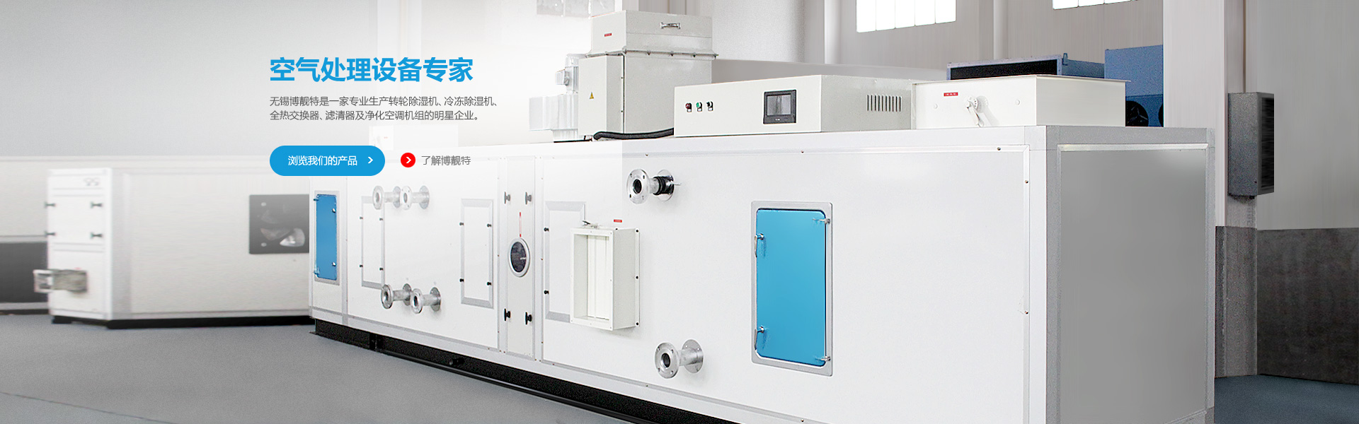 無錫博靚特空氣處理設(shè)備有限公司是一家專業(yè)生產(chǎn)轉(zhuǎn)輪除濕機(jī)、冷凍除濕機(jī)、恒溫恒濕機(jī)、全熱交換器、新風(fēng)處理機(jī)及凈化空調(diào)機(jī)組的明星企業(yè)。 公司座落于中國長三角的中心城市——江蘇省無錫市。公司背鄰太湖,旁倚錫宜高速和…